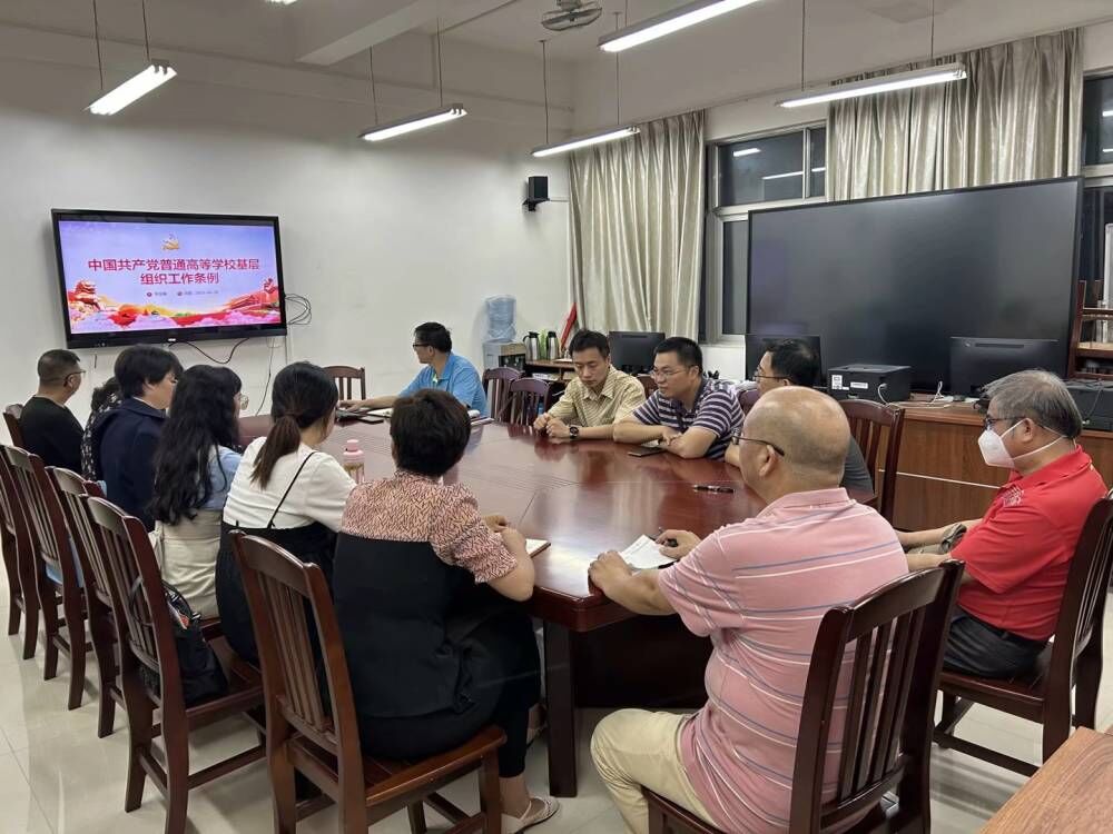 6月28日晚,教工党支部在逸夫楼203会议室专题学习《中国共产党普通高等学校基层组织工作条例》(以下简称《条例》)。党支部书记韦玉程主讲,党支部所有党员参加。
