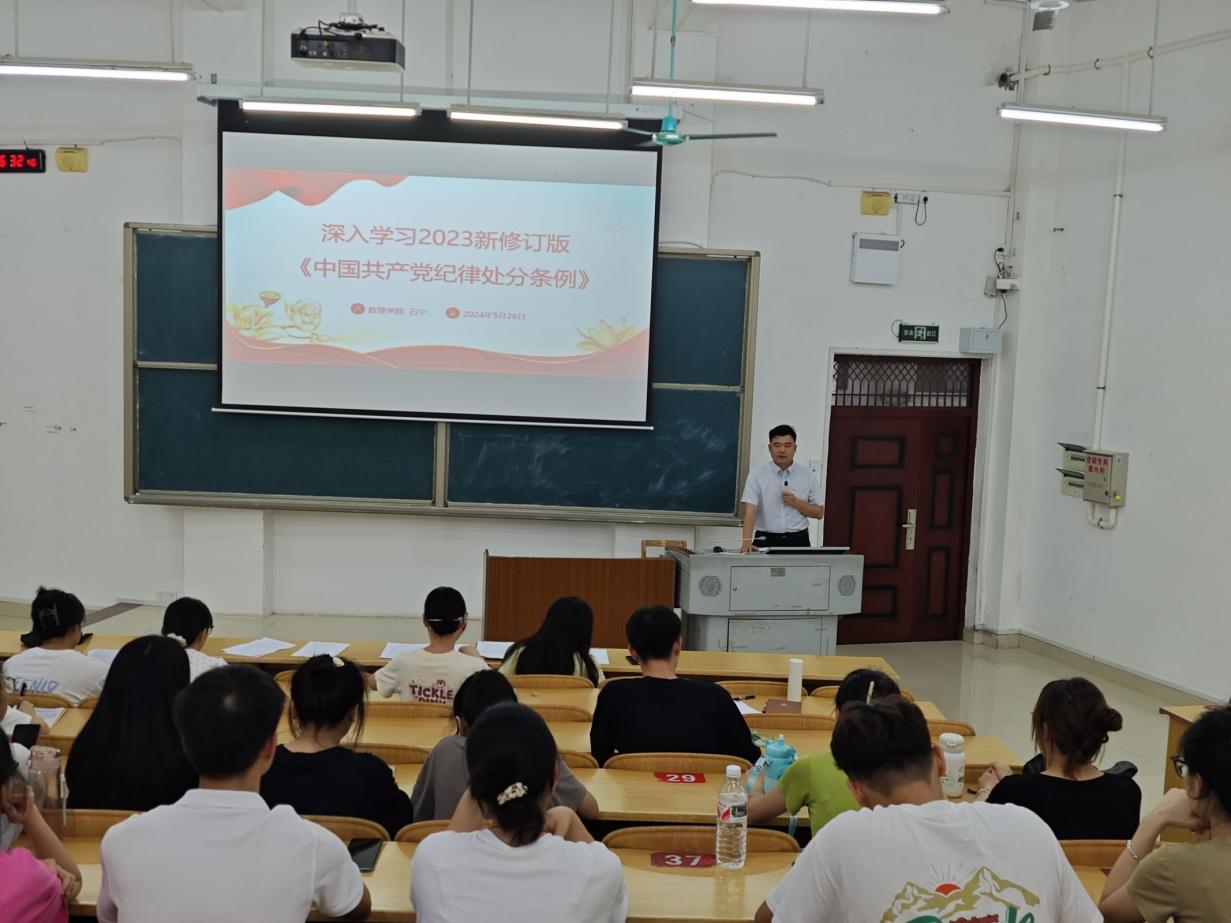 5月30日下午,太阳成tyc7111cc员工第二党支部在西区格致楼负102教室组织学习2023新修订版《中国共产党纪律处分条例》。本次会议由公司党委副书记石宁主讲,太阳成tyc7111cc员工第二党支部全体党员同志、发展对象及积极分子参加此次会议。