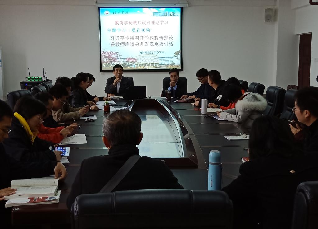 3月27日下午,数学与统计学院在西区格致楼823召开教师政治理论学习专题会议,会议由数统公司党总支部书记黄星寿主持,数统学院全体教职工参加会议。