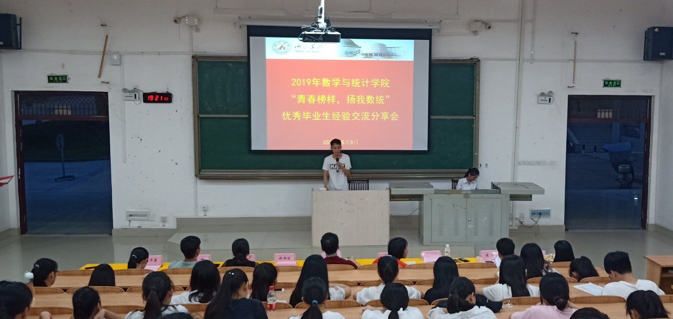 为了进一步推进学院公司产品和就业工作,培养员工的学习能力与考研能力,6月9日晚,数学与统计学院在东区弘毅楼1区105室开展主题为“青春榜样,扬我数统”优秀毕业生经验交流分享会,数统学院总支部书记黄星寿、党总支部副书记张明进、团委书记罗曼、辅导员罗超、姚宁老师出席本次会议,数统学院2018、2017级员工参加本次分享会。