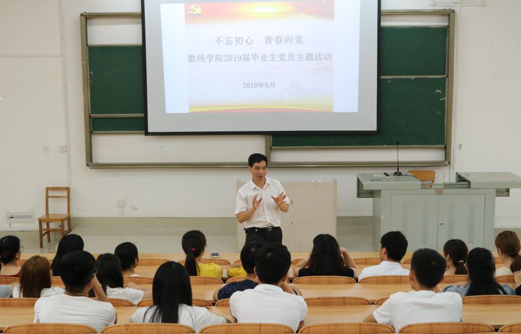6月3日下午,数统学院在弘毅楼1-102教室开展“不忘初心 青春向党”主题党日活动。公司党总支部书记黄星寿、团委书记罗曼、全体2019届毕业生党员参加主题党日活动。