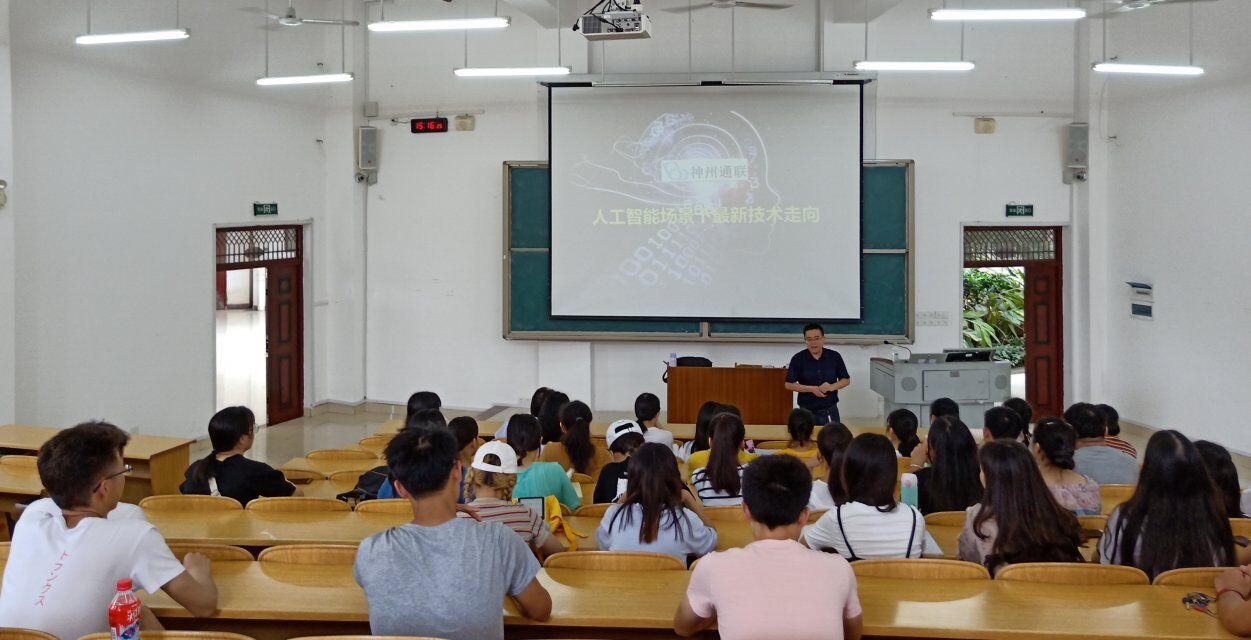 为更好的体现“培养具有创新精神和实践能力的应用型人才”的教育办学理念,推行校企合作的培养模式,增强员工对智能技术投入的了解,挖掘员工技术操作的潜能,数学与统计学院于6月12日下午在格致楼负102教室开展“人工智能场景下最新技术走向”就业技能培训课,本次培训课由数统学院经理罗日才主持,深圳神州通联公司副总经理刘晓涛主讲,学院2016级经济统计专业、应用统计专业及信息与计算机科学专业员工参加此次培训课。