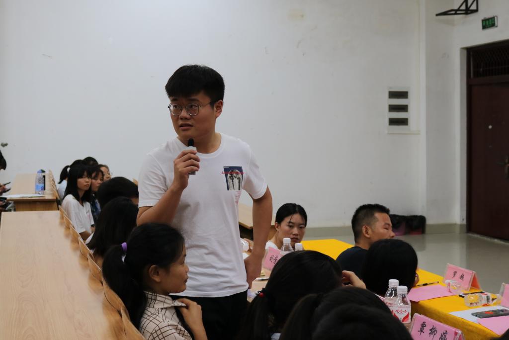 交流会上,16、17级的优秀员工代表汤成业、谭刘青、覃柳婷、麦金丽、刘芳芳等五位同学分别与新生们分享了自己的老员工活,他们从学习、工作、生活等不同角度给新生们提供了自己的经验,也对新生提出了鼓励。随后,张明进老师做总结发言,他强调新生们一要树立远大的目标,要志存高远;二要学会共处,学会交际;三要学会学习,勤奋好学,祝福2019级新同学能在大学四年中不断成长,练就过硬技能,成为栋梁之才。