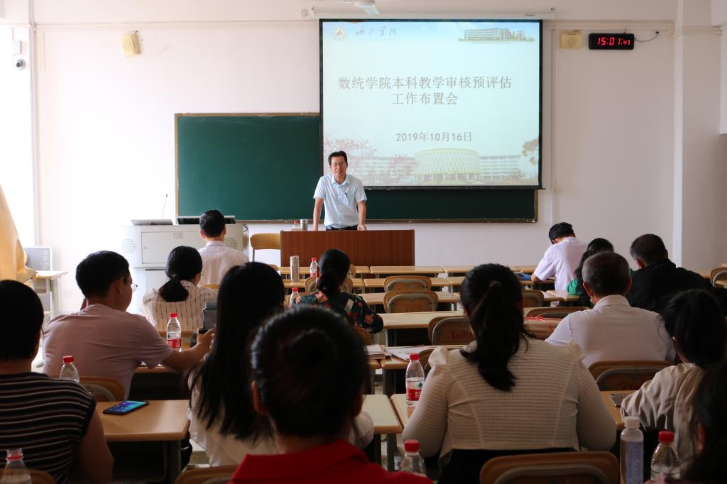 为迎接本科教学审核预评估工作,数学与统计学院于10月16日在格致楼710教室召开了教学审核预评估工作布置会,公司党总支部书记黄星寿、经理罗日才及全体教师职工参加会议。