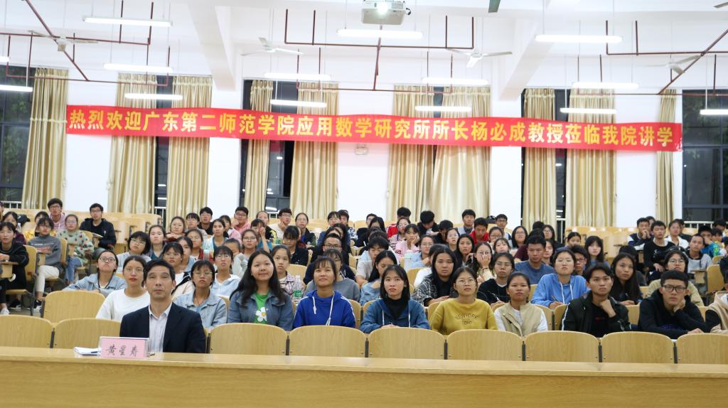 11月7日,广东第二师范学院应用数学研究所所长杨必成教授应邀到数统学院讲学,全院师生代表在西区格致楼负101教室聆听了杨必成教授题为《自由品格沐春风——谈谈我的追梦数学之旅》的励志讲座。本次讲座由数统学院党总支书记黄星寿主持。