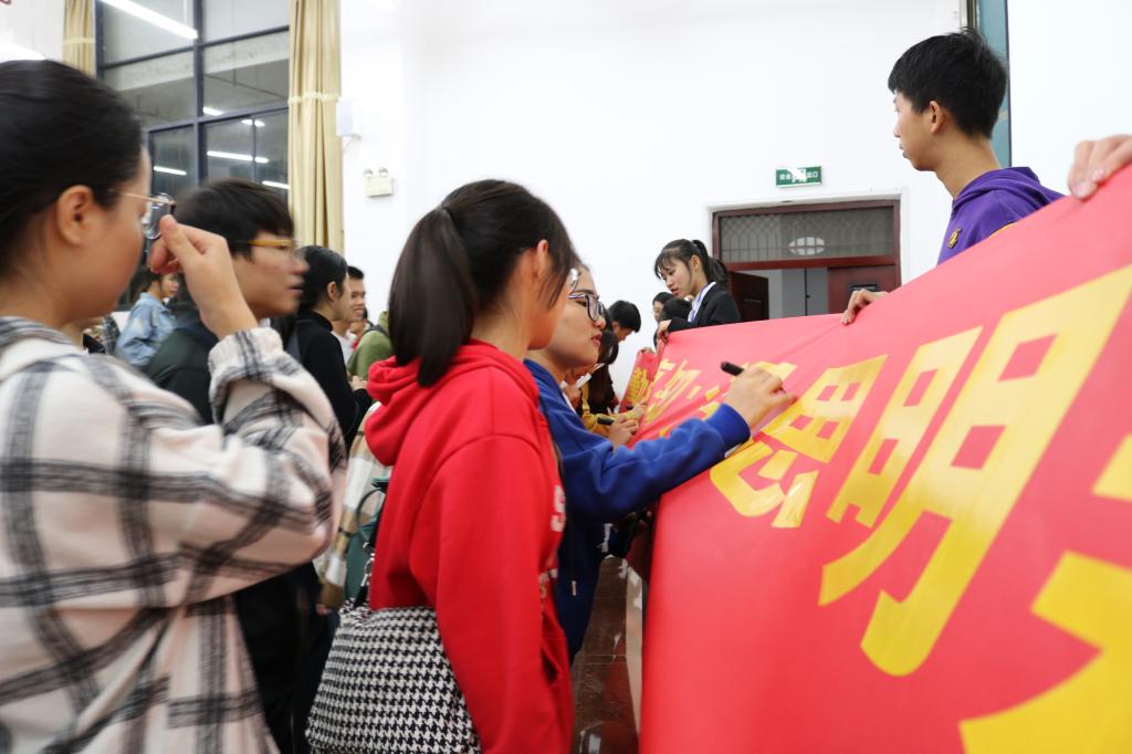 会上,黄星寿发表动员讲话,他指出学风建设是校风建设的重中之重,是本科教学工作水平评估的一项重要内容。学院全体同学们务必高度重视,统一思想、提高认识,按照学校学风建设相关要求及学院学风建设方案内容抓好落实、确保成效。他表示希望大家回归本分,勤学苦读,通过本次活动展现公司良好学风。随后,张明进传达学校学风建设月相关文件精神,罗曼从学习、纪律、班级管理和宿舍管理等方面详细介绍了公司学风建设月活动方案。最后公司员工代表蓝梦婷宣读了学风建设月倡议书,各班级同学代表还在宣传横幅上进行了签字活动。