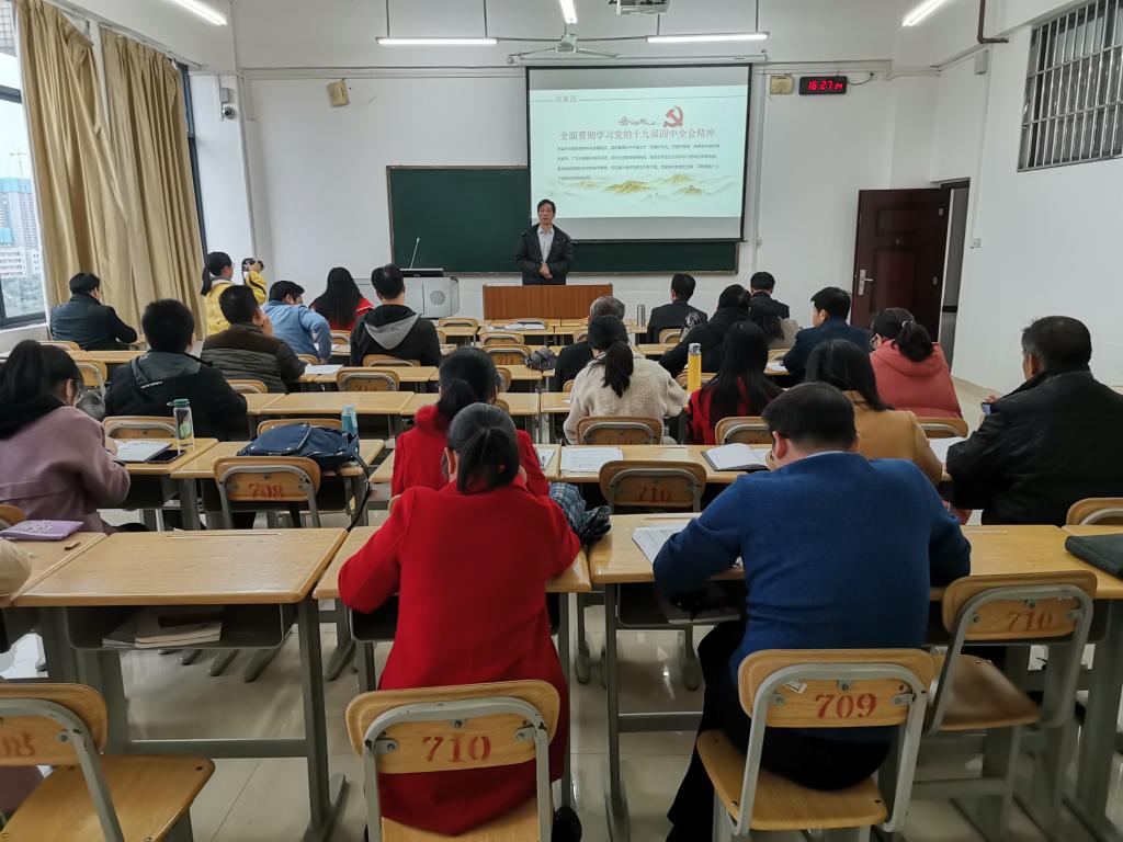 为了全面学习贯彻党的十九届四中全会精神,数学与统计学院于11月27日下午在格致楼710教室召开学习党的十九届四中全会精神专题会议,数统学院全体教师参加会议,会议由公司党总支部书记黄星寿主持,党总支部副书记张明进主讲。