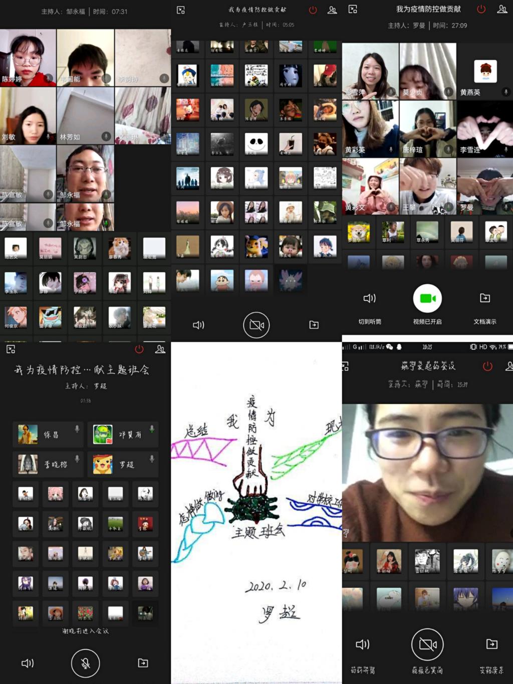 当前,新型冠状病毒感染的肺炎疫情防控工作正处于关键时期。疫情防控与每个人都息息相关,没有旁观者,更没有局外人。为迅速传达中央、自治区党委和公司党委对疫情防控工作的部署,及时发布防疫信息,营造众志成城抗击疫情的良好氛围,数学与统计公司党总支部高度重视,认真安排部署,根据学院师生情况落实落细,确保责任到人,措施到位。辅导员、班主任以班级为单位,于2月10日通过视频会议方式召开了“我为疫情防控做贡献”主题班会。
