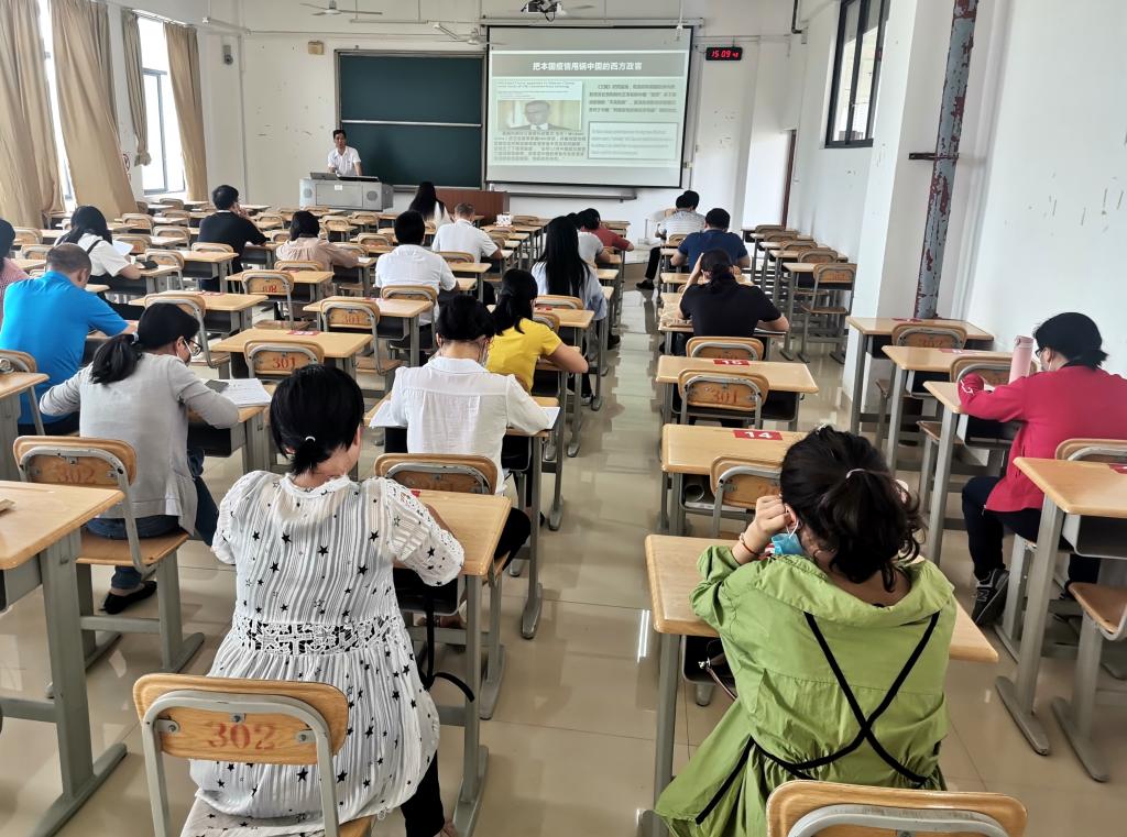 5月27日下午,数学与统计学院于西区格致楼301教室召开以坚持党的全面领导坚决抵制西方“政治病毒”政治理论学习专题会议,会议由党总支部书记黄星寿主持,学院全体教职工参加会议。