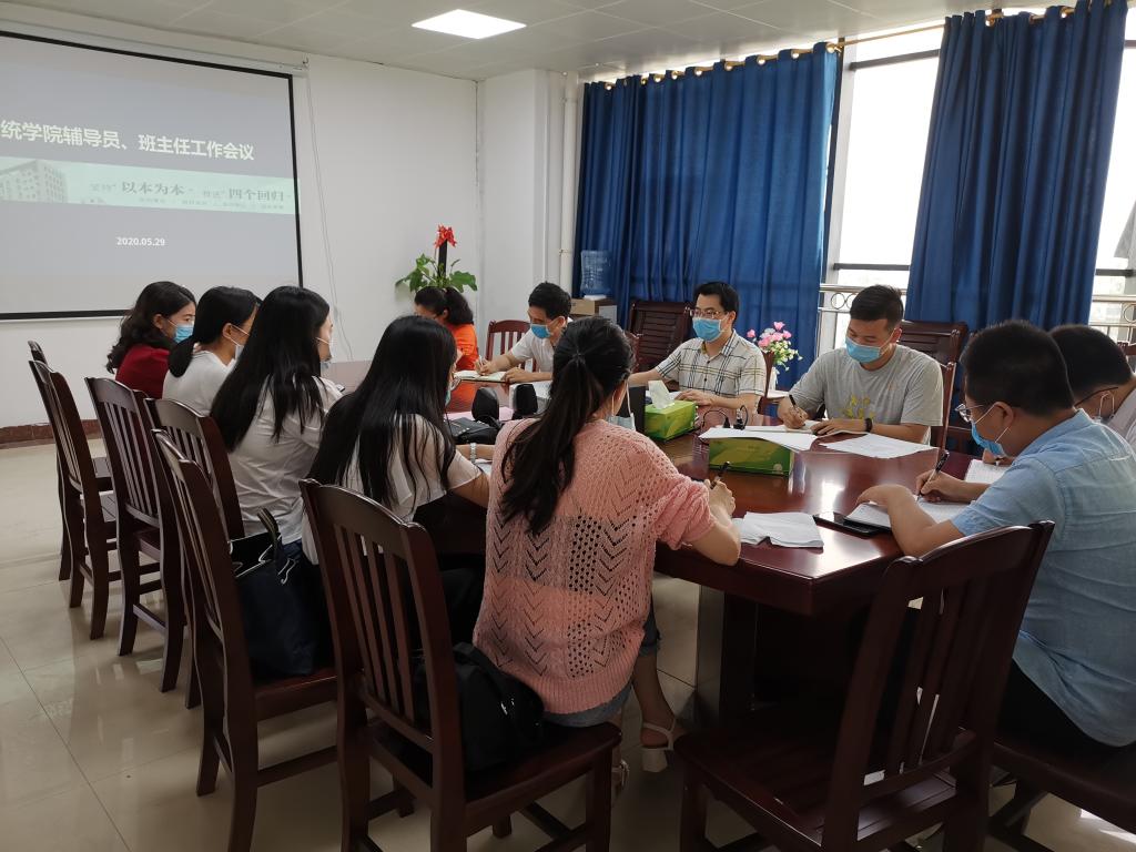 5月29日下午,数学与统计学院于格致楼612会议室召开员工工作会议,会议由公司党总支部副书记张明进主持,公司党总支书记黄星寿、学院全体辅导员及班主任参加会议。