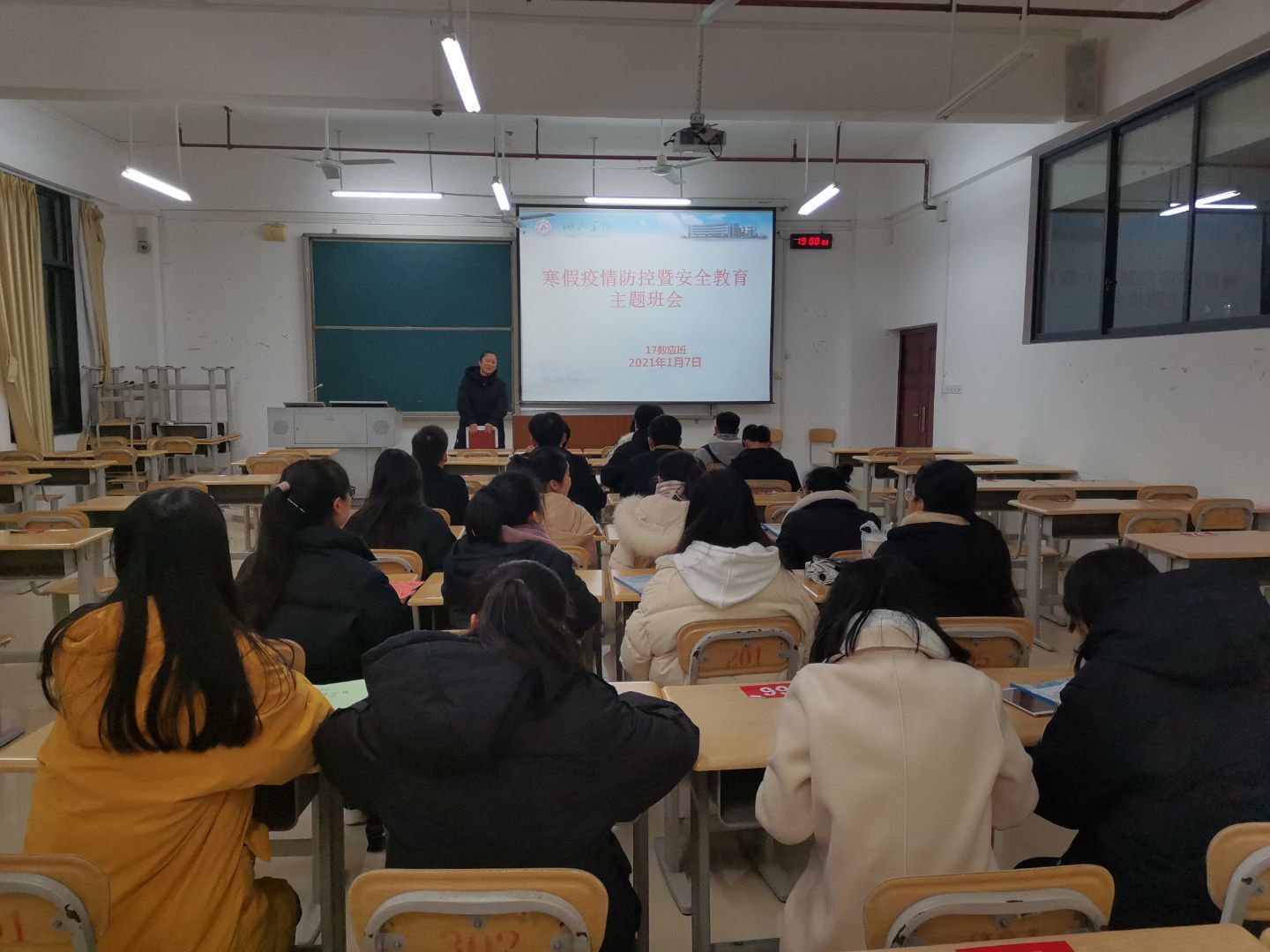 据悉,会议结束后各专业班级班主任立即组织各班级开展寒假疫情防控与安全教育主题班会,落实落细各项工作要求,确保期末假期员工身心健康安全稳定。