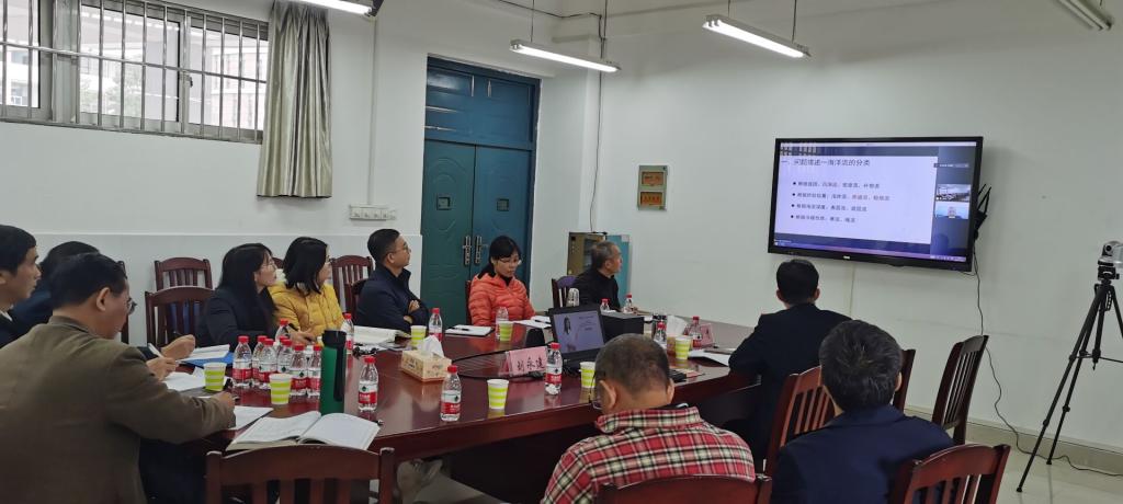 最后王锦荣教授向老师们做了线上学术报告,他先给出了球坐标意义下南极绕极流问题数学模型推导,然后运用经典的非线性泛函分析工具获得该模型多种边值条件下解的存在性结果,进而推进至北极环流的相关问题研究。并提出新的涡度函数方法,指出了赤道附近常数涡度海洋流的运动规律,给出了边缘波问题精确解表示和稳定性分析,最后给出了精确解的若干新表示及其局部和全局分析,得到了带湍流项的Ekman模型的周期解和稳定性,以及洋流问题的涡度方法和常数涡度大气Ekman流的运动规律。