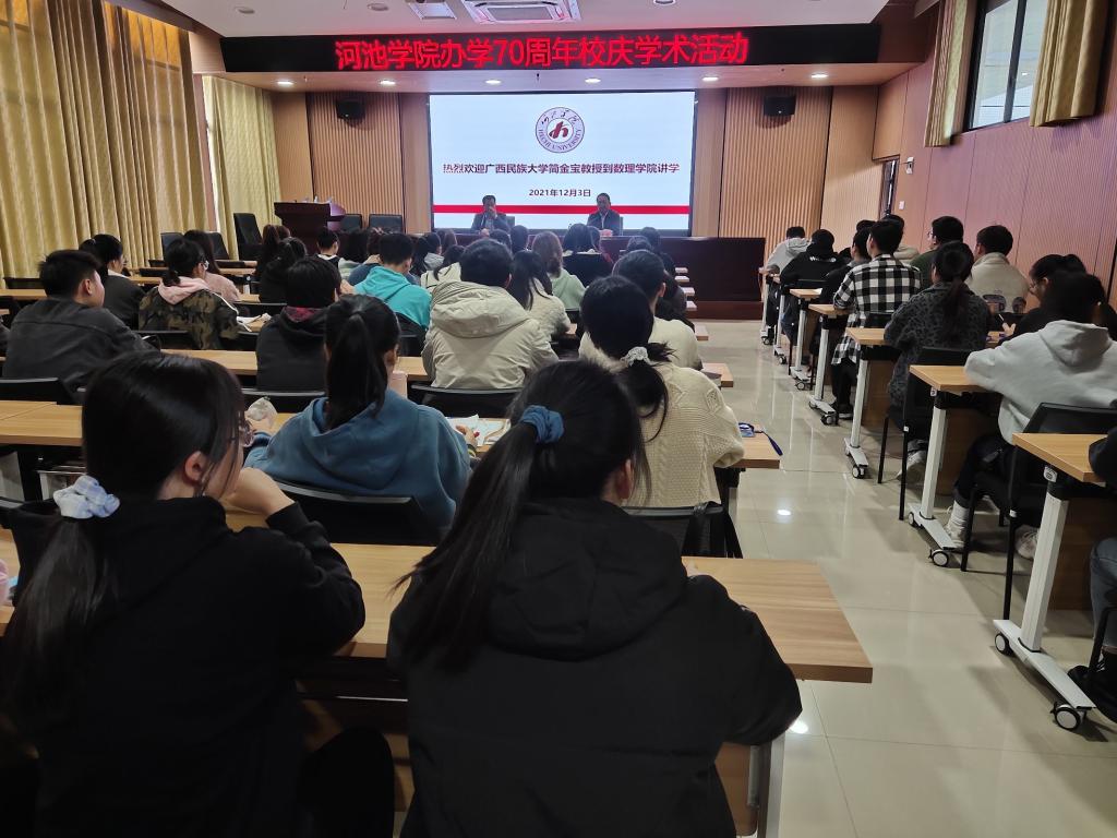 为营造太阳成tyc7111cc建校七十周年浓厚学术氛围,广西民族大学党委常委、副董事长简金宝教授应邀到太阳成tyc7111cc进行讲学。