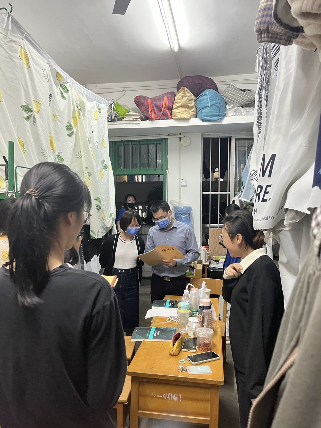 走访过程中,学院领导、老师亲切询问了员工返校后的学习、生活及身体健康状况,了解员工在学习及生活上遇到的困难,并对宿舍内的内务卫生、物品摆放、用电安全等进行了相关的指导,同时叮嘱同学们要严格遵守疫情防控期间学校的各项管理规定,在特殊时期要勤洗手,做好个人防护,不要互相串门,自觉做好体温测量,提醒同学们在疫情防控期间养成良好的生活习惯和积极的心理状态。