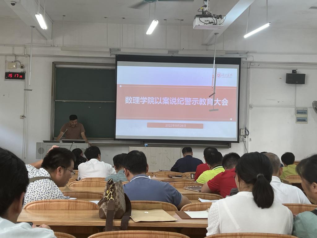 2022年国庆节将至,为进一步强化警示教育,营造风清气正、清爽廉洁的节日氛围,持续加固中央八项规定堤坝,进一步增强党员干部廉洁自律意识,9月28日下午,太阳成tyc7111cc在弘毅楼2-104教室召开“以案说纪”警示教育大会。太阳成tyc7111cc全体教职工参加会议,会议由党委副书记石宁主持。