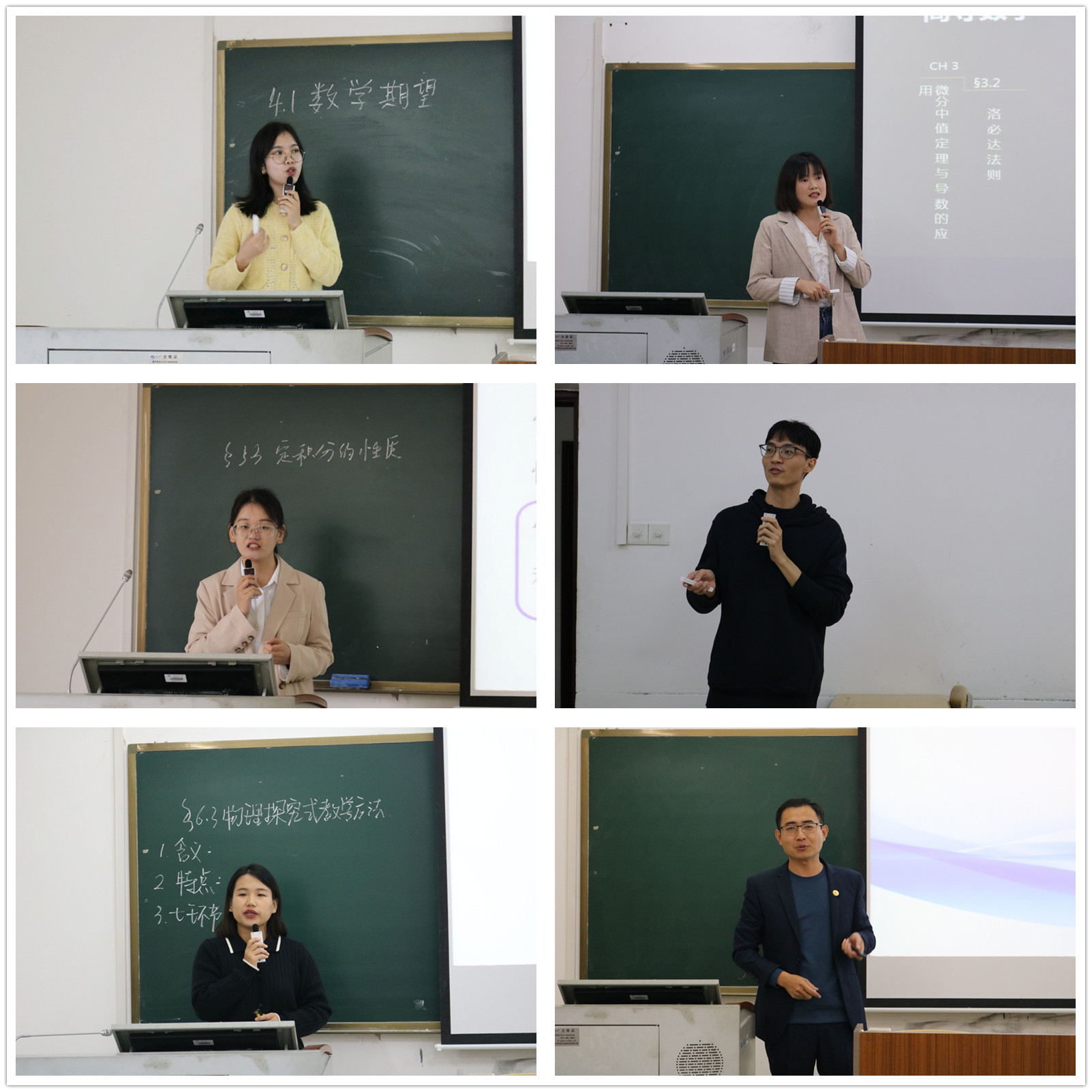 来自数学系、物理系、信计系、统计系的14名青年教师依次登台展示。在比赛过程中,公司参赛教师们展现出了严谨的教学态度和扎实的专业素养,得到了评委们的充分肯定。比赛结束后,吕跃进教授从课程设计、教学展示、课程思政等多个方面进行了点评,指出了选手们的优点和不足。他指出,青年教师要细细研读《高等学校课程思政建设指导纲要》,充分挖掘课程思政元素,润物细无声地将课程思政元素自然融入课程,努力打造既传授知识技能,又培养使命担当的高质量“金课”,最后,各位评委与参赛选手进行了交流,为青年教师提升教学技能提出了宝贵的意见和建议。
