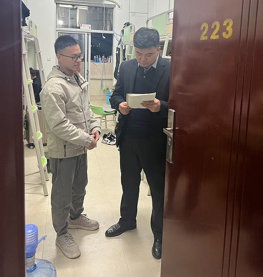 会后,学院领导班子及全体辅导员、班主任走访员工宿舍,了解员工返校情况并关心员工的学习、生活状况,提醒同学们注意宿舍安全,并督促大家好好复习,迎接期末考试。