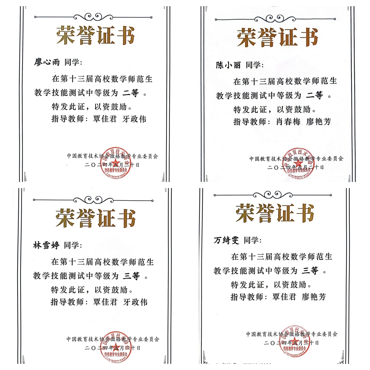 【喜讯】公司学子在第十三届高校数学师范生教学技能测试活动中喜获佳绩