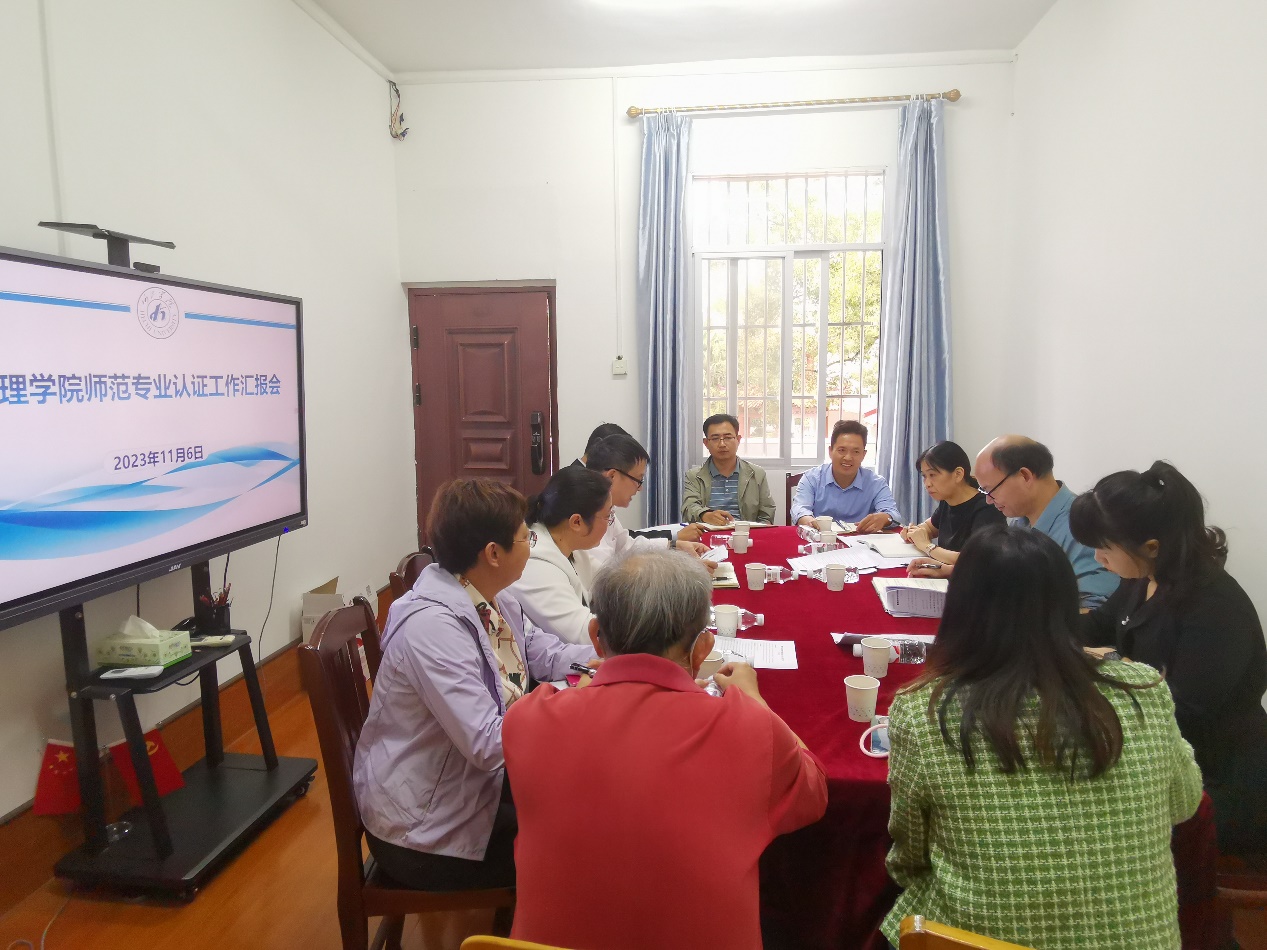 为进一步做好数学与应用数学师范专业认证工作,11月6日下午,太阳成tyc7111cc于明德楼202会议室召开数学与应用数学专业师范认证推进工作汇报会。学校副董事长贺卫国、教务处处长黄秀香、发展规划与评估中心副主任覃琪到场指导,太阳成tyc7111cc师范类专业认证工作领导小组全体成员参加了会议。会议由韦玉程经理主持。