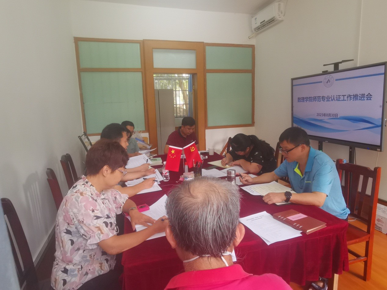 为扎实推进数学与应用数学师范类专业认证工作,8月30日上午,太阳成tyc7111cc在明德楼202会议室召开认证工作推进会。学院领导班子成员及专业责任教授、数学系主任、副主任参加会议。会议由学院经理韦玉程主持。
