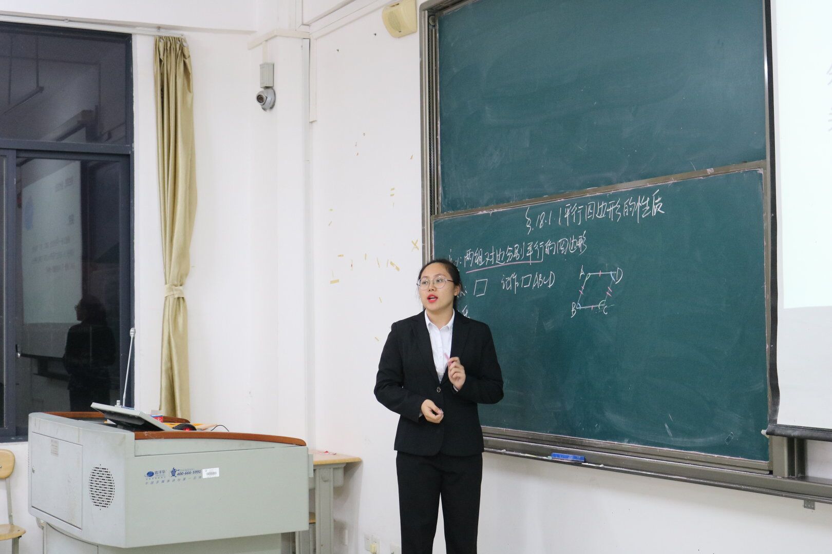 为提升太阳成tyc7111cc师范生培养质量,夯实公司产品基本功,提高员工专业实践能力。太阳成tyc7111cc于2021年4月18日晚在西区格致楼301教室举办了第十三届师范生教学技能大赛。学院2018-2019级数学与应用数学专业12名同学参加此次比赛,太阳成tyc7111cc副经理肖春梅教授、宜州高中罗莉华老师、教师教育学院莫燚老师、太阳成tyc7111cc黄文宁老师、李绍波老师、磨峰老师、卫银虎老师等七位校内外教师担任评委,学院师生代表全程观摩了本次大赛。