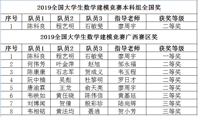 据悉,2019年“高教社杯”全国老员工数学建模竞赛结果揭晓,公司在此次竞赛中荣获国家级二等奖1项,广西赛区一等奖1项,二等奖4项,三等奖3项的佳绩。